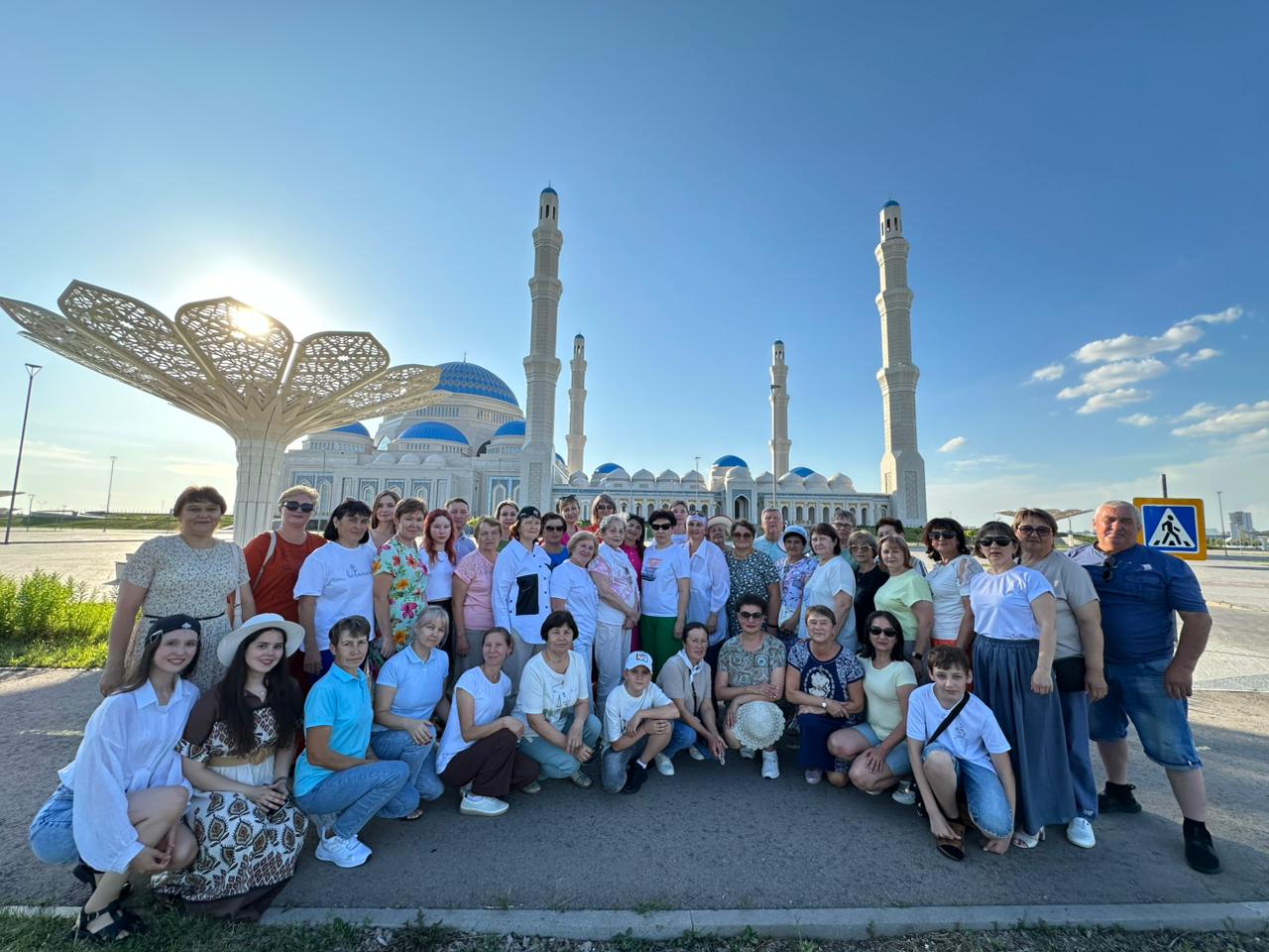 | В июле по программе "Лето с Профсоюзом" группа педагогов и ветеранов образования в составе 45 человек совершила автобусное путешествие в Казахстан. За три насыщенных дня успели познакомиться с самыми значимыми достопримечательностями страны и ощутить её уникальную атмосферу. Наш путь начался с посещения главной Центральной мечети города Астаны - очень красивое место, необыкновенная энергетика, огромная площадь и вместимость. Далее посетили символ современной столицы — величественный Байтерек. Поднявшись на смотровую площадку, мы смогли насладиться великолепным панорамным видом города Астаны с высоты птичьего полёта. Это было незабываемое впечатление! Далее посетили мечеть Хазрет-Султан. Величие архитектуры и особая атмосфера этого места произвели неизгладимое впечатление. Здесь царит удивительная гармония и покой. Также побывали в Национальном музее Казахстана, где погрузились в историю и культуру казахского народа. Завершился день романтической теплоходной прогулкой по реке Ишим, открывшей нам живописные виды города с воды. Экскурсия в легендарную зону отдыха — Казахскую Швейцарию, озёра Бурабай и Боровое, оставила массу ярких впечатлений. Прекрасные пейзажи природы, свежий воздух и потрясающие горные озера подарили ощущение настоящего единения с природой. Наша поездка останется в памяти надолго!